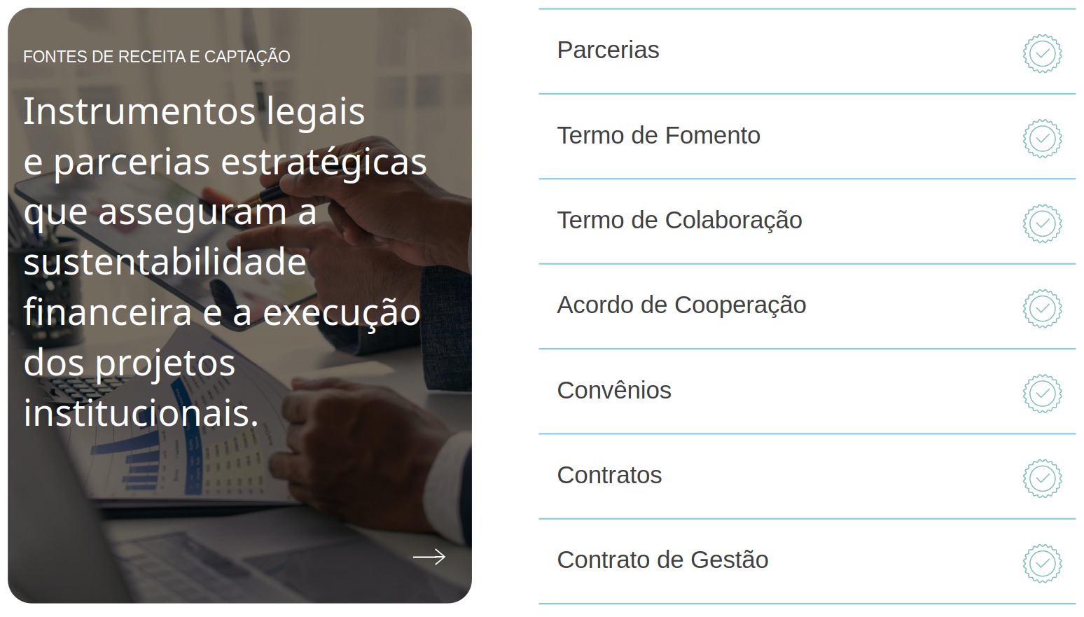 Construímos relações éticas e colaborativas, pautadas pelo compliance, pela prestação de contas e pelo engajamento contínuo com o interesse público. Cada parceria é conduzida com integridade
